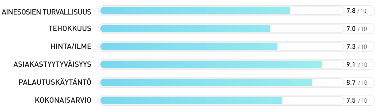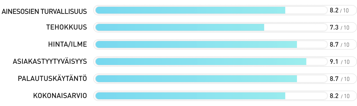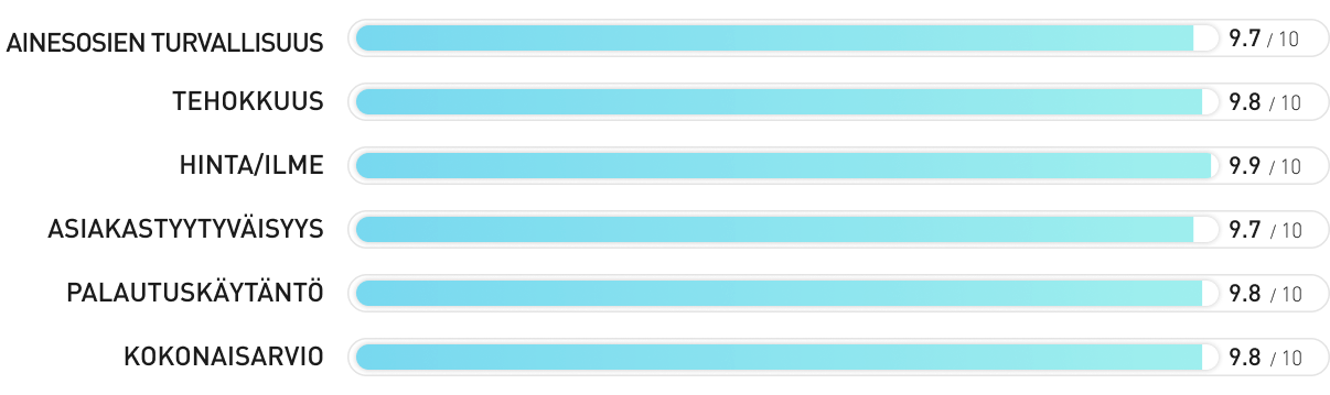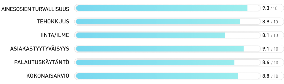 - Sertifioitu ”erittäin hyväksi” tunnustetussa TÜV-testissä